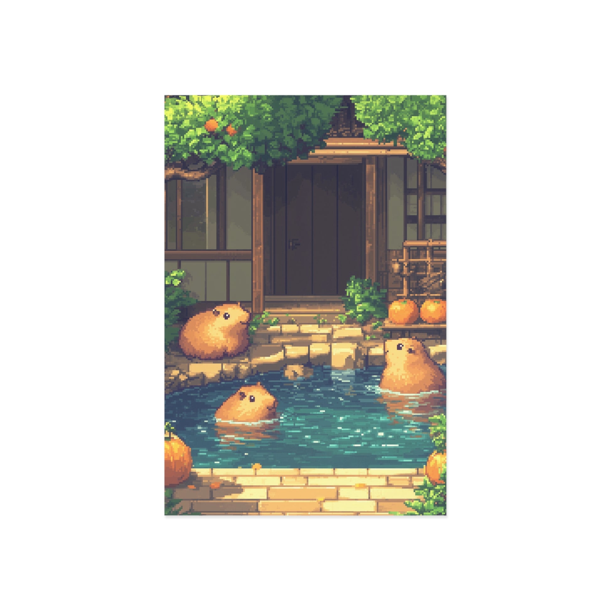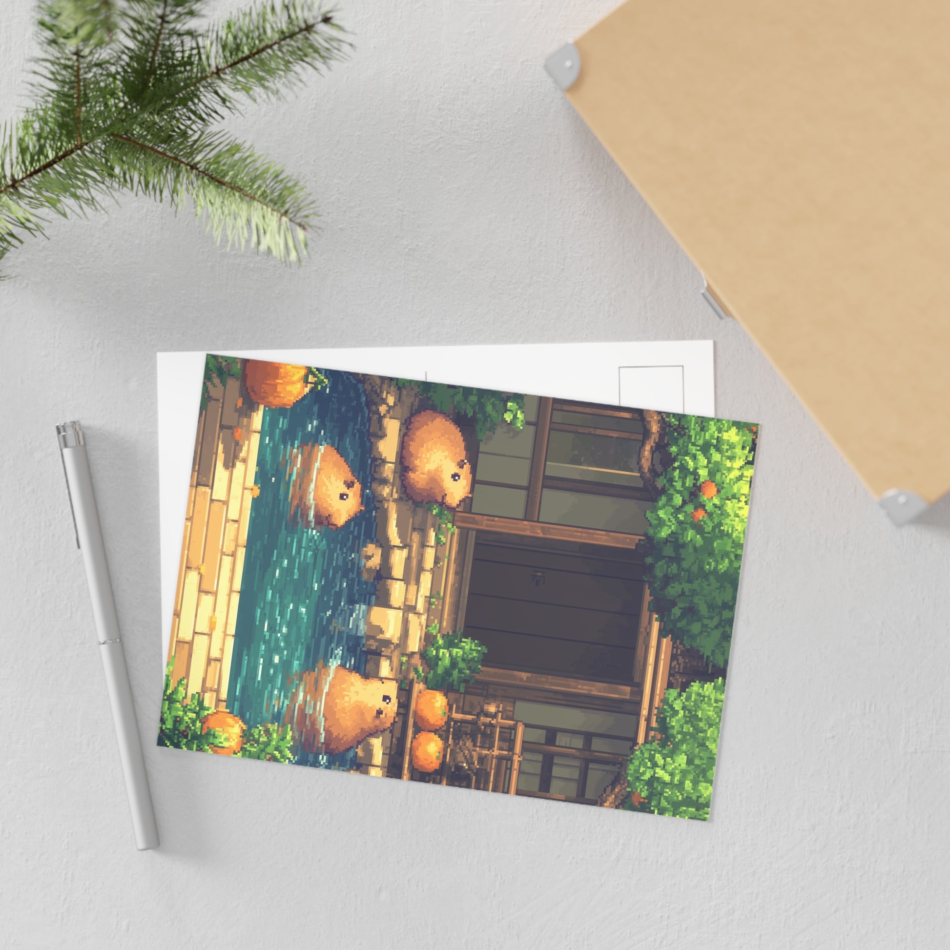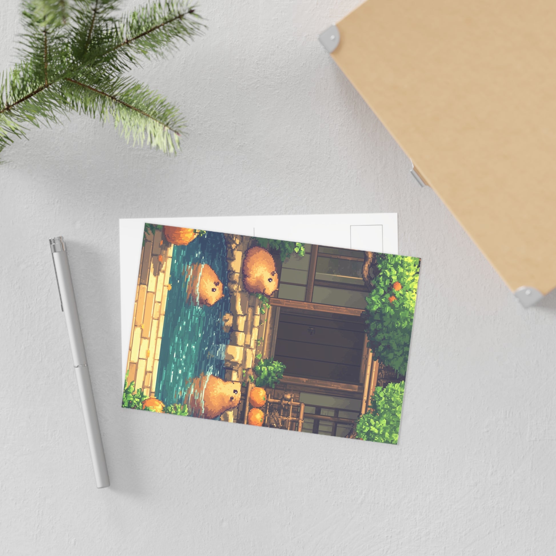 Send some soothing vibes with our "Adorable Capybaras" Postcards! Featuring adorable capybaras relaxing in a hot tub outside a Japanese-style house, surrounded by cheerful oranges and soft, serene colors, these postcards bring the ultimate in cozy, kawaii relaxation. With gentle greens, beiges, blues, and oranges, they’re the perfect way to share a little peace and joy.