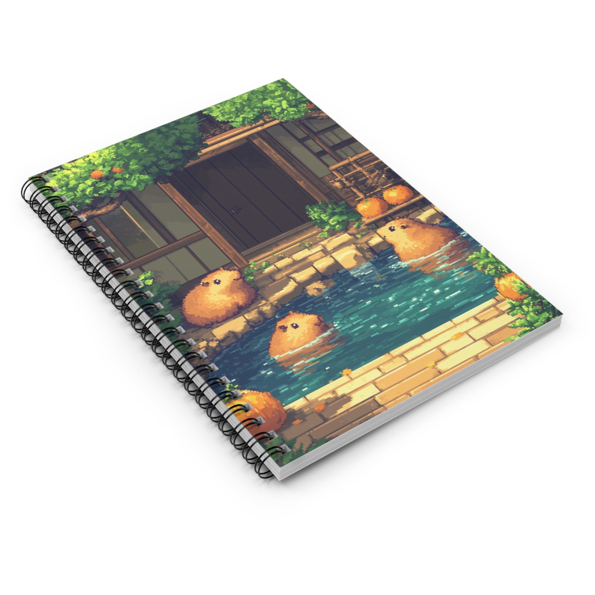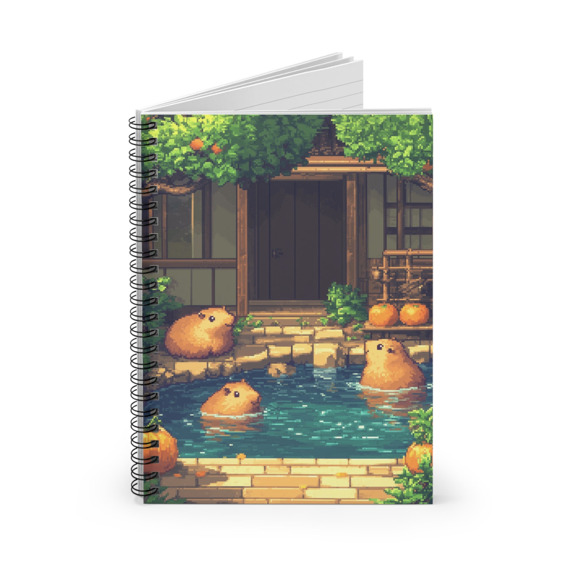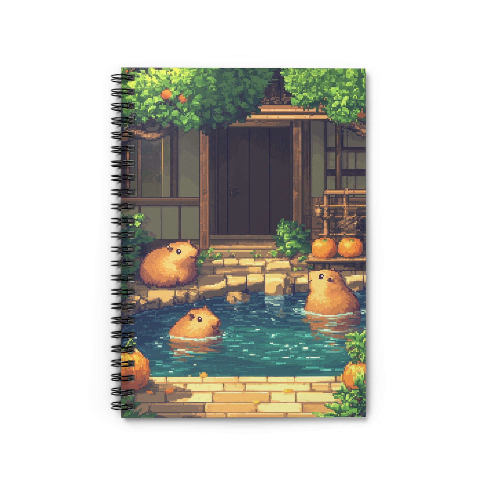 Unwind and let your creativity flow with our "Adorable Capybaras" Spiral Notebook - Ruled Line! This dreamy design features adorable capybaras soaking in a warm hot tub, surrounded by juicy oranges and the peaceful beauty of a traditional Japanese-style house. This notebook radiates pure cozy vibes—perfect for jotting down thoughts, doodling, or simply bringing a little relaxation into your day.