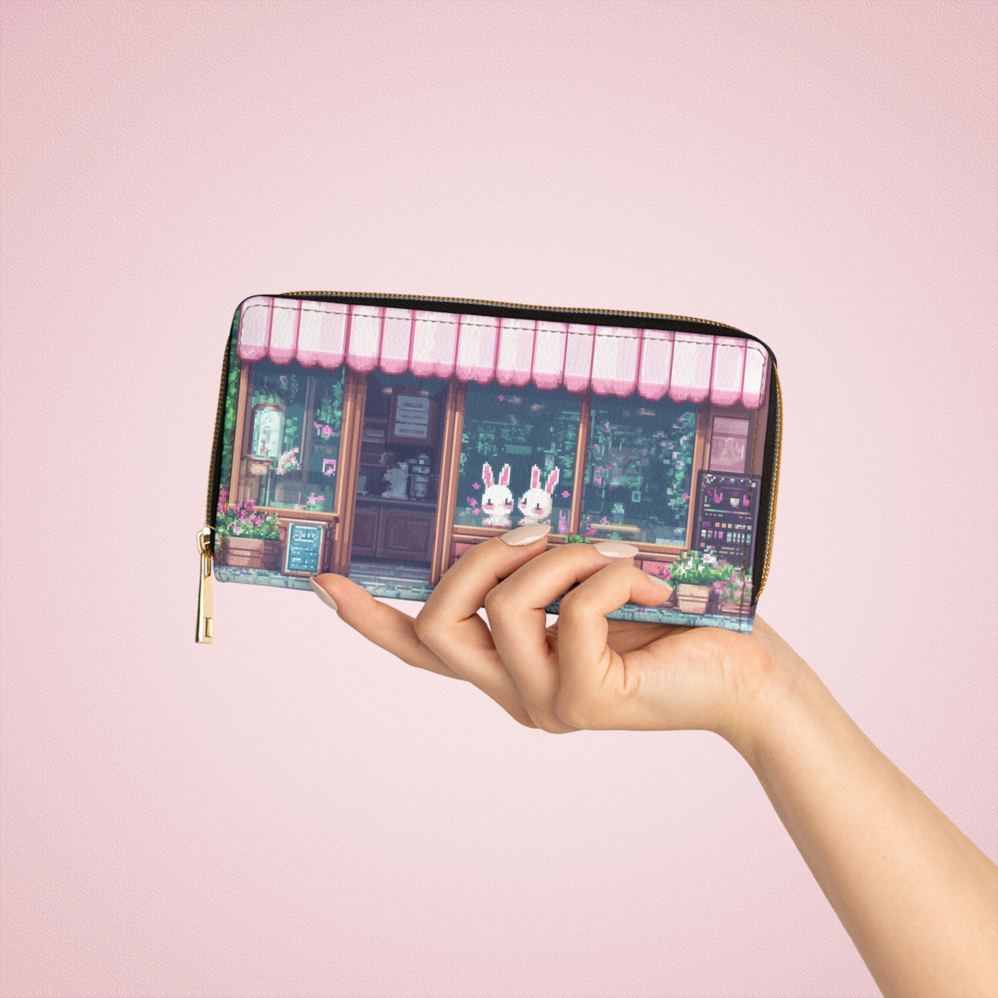 Add a sprinkle of sweetness to your day with our "Bunny Café Bliss" Zipper Wallet! Featuring two adorable bunnies inside a cozy cafe, surrounded by soft pink and happy tones, this wallet brings an extra dose of cuteness to your everyday essentials. It's like carrying a warm cup of joy wherever you go!