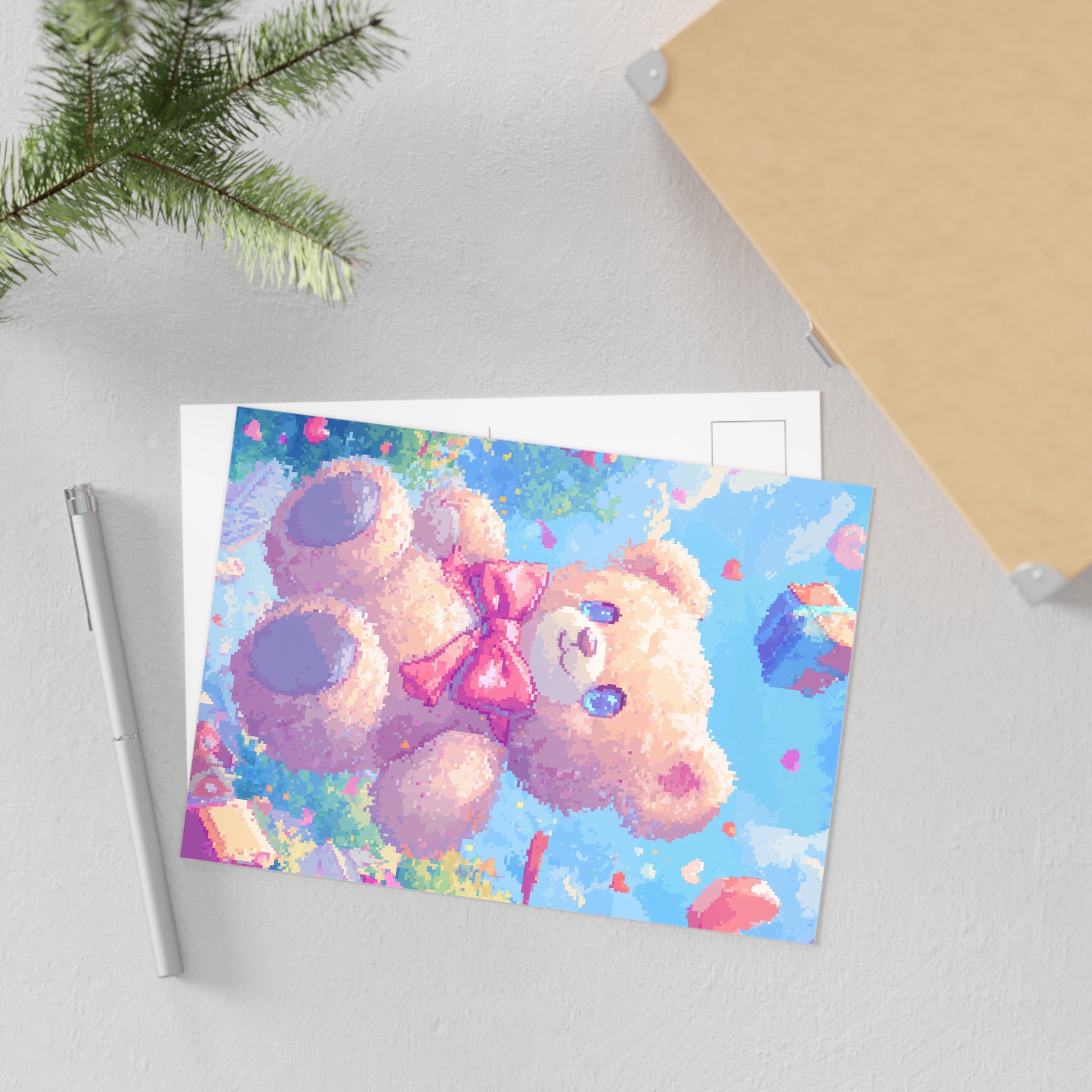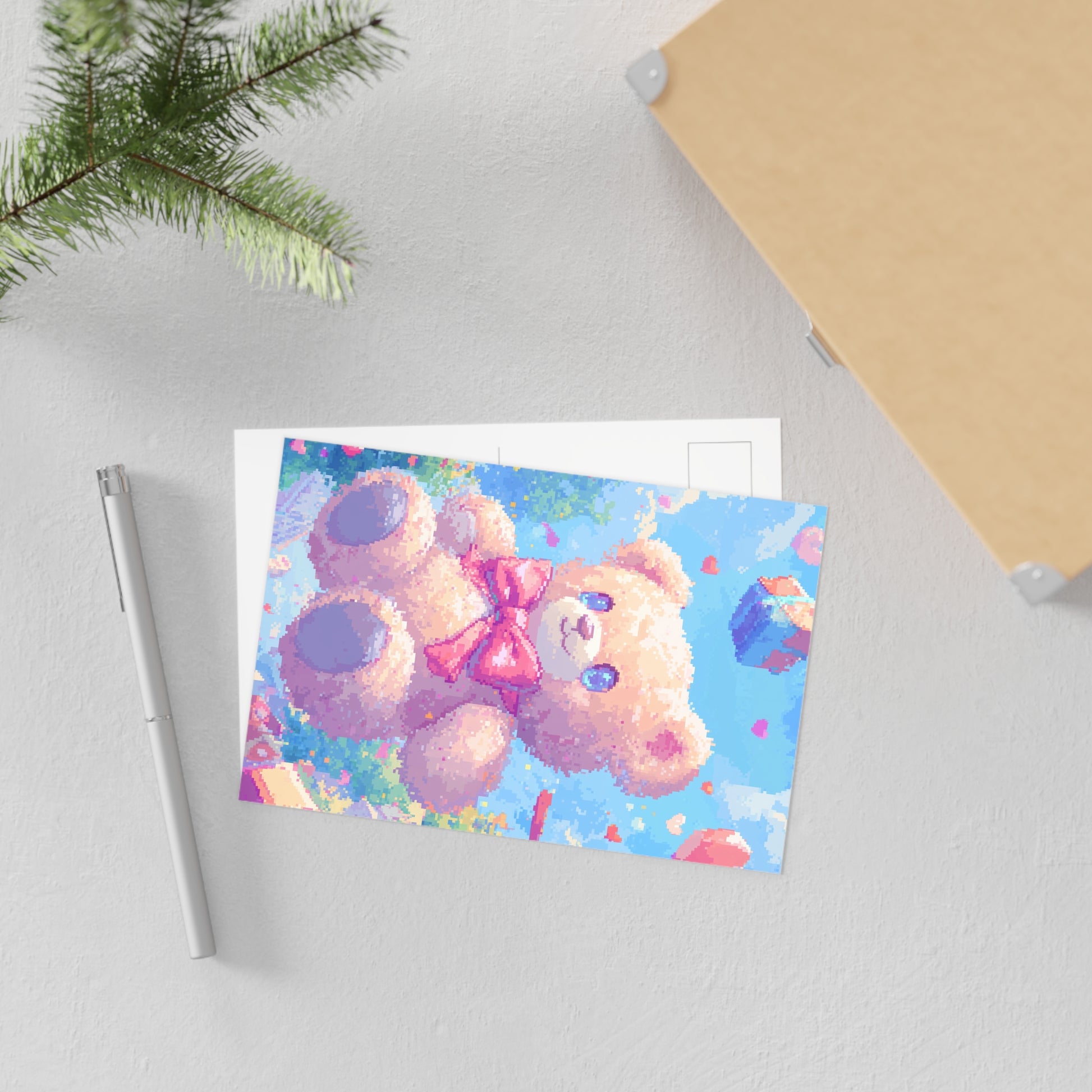 Send a cloud of cuteness with our "Cute Teddy" Postcards! Featuring an adorable teddy drifting peacefully through a pastel blue sky, surrounded by soft pink clouds, these postcards are a sweet little escape to a dreamy world. With soft, soothing colors and an utterly charming vibe, they’re the perfect way to spread a little joy and magic.