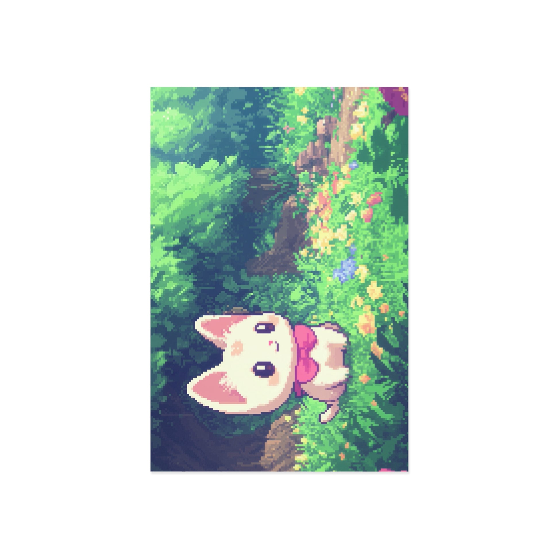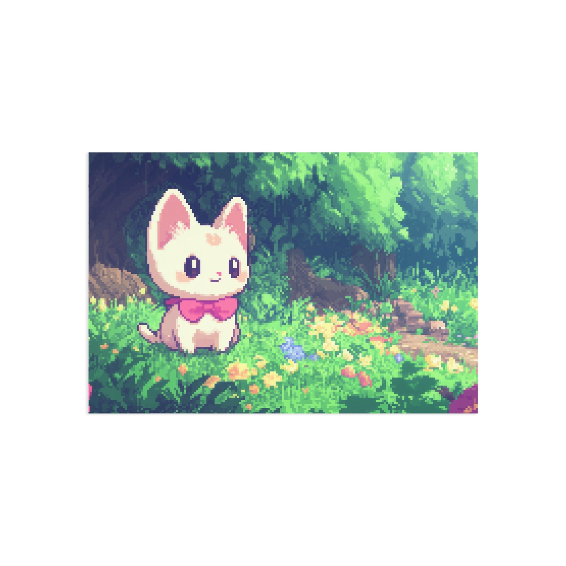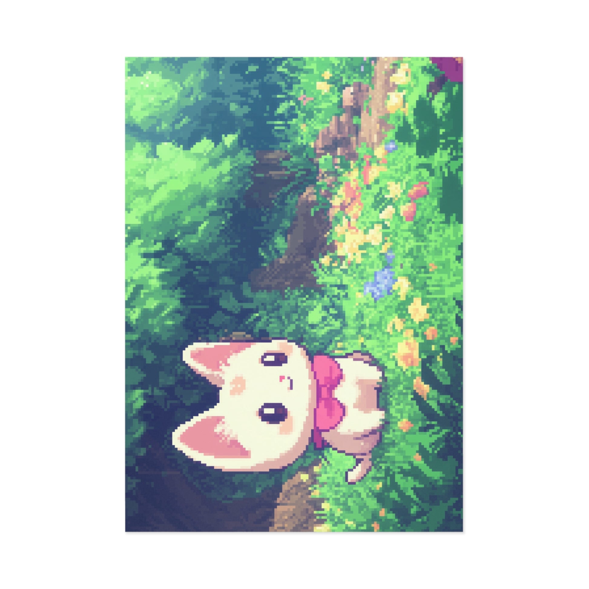 - Cute pixel art of a kawaii kitty surrounded by a vibrant, colorful forest