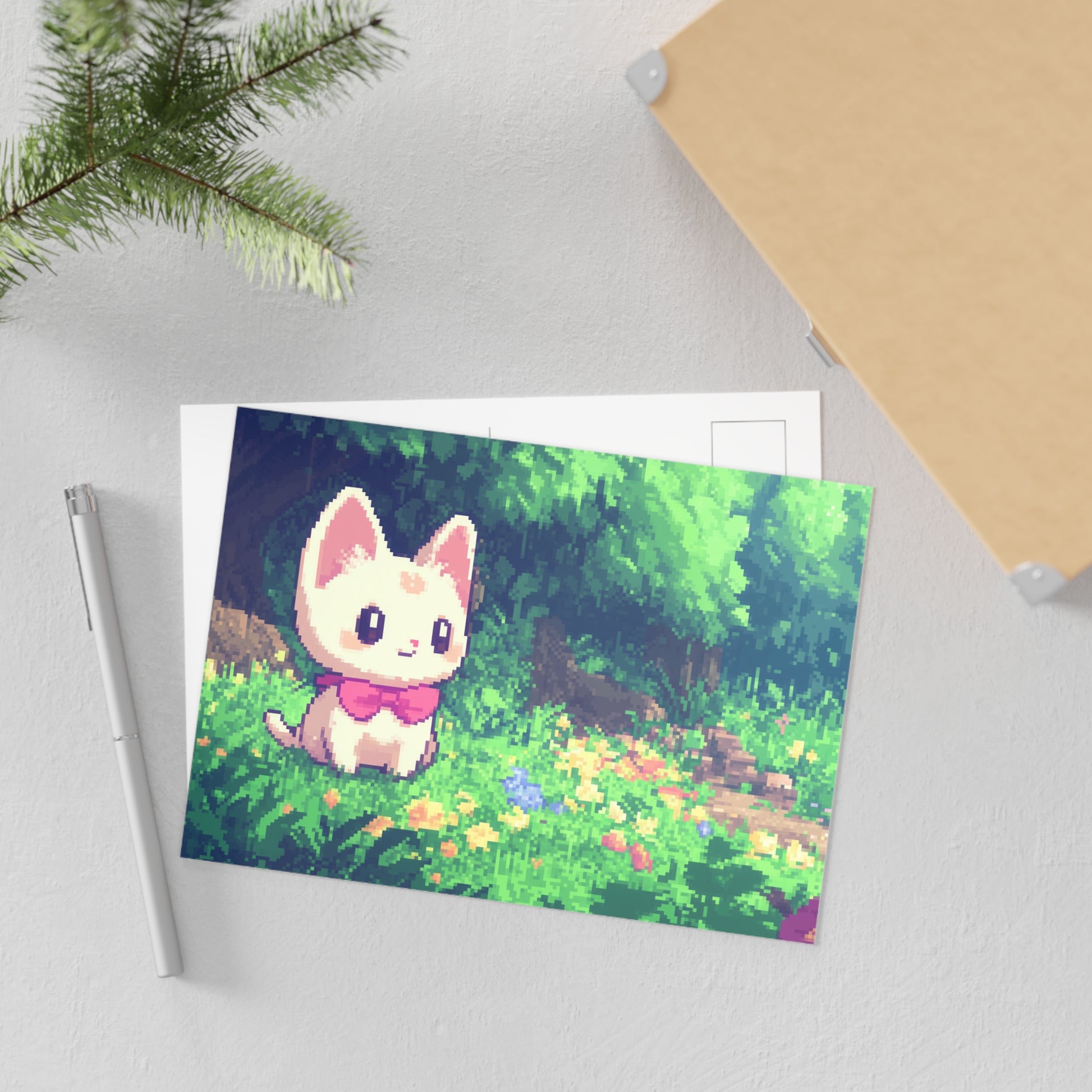 Send a burst of cuteness with our "Forest Kitty" Postcards! Featuring an adorable kitty nestled in a colorful, whimsical forest, these postcards are full of charm and joyful vibes. With bright hues and a playful, dreamy atmosphere, they’re the perfect way to share a little magic and sweetness with someone special.