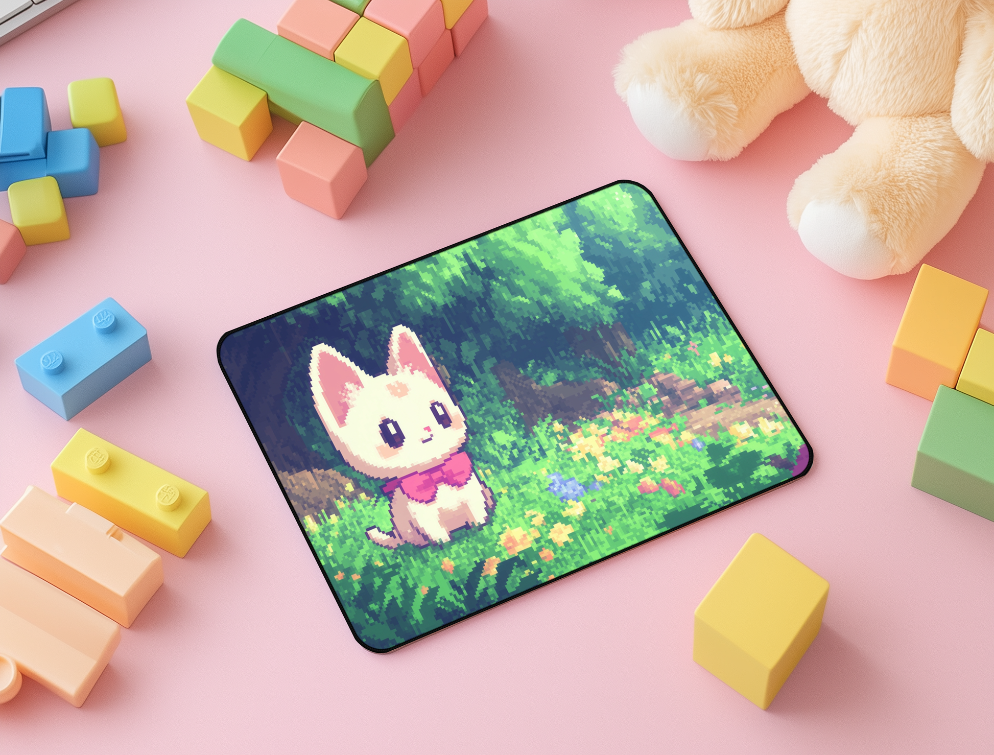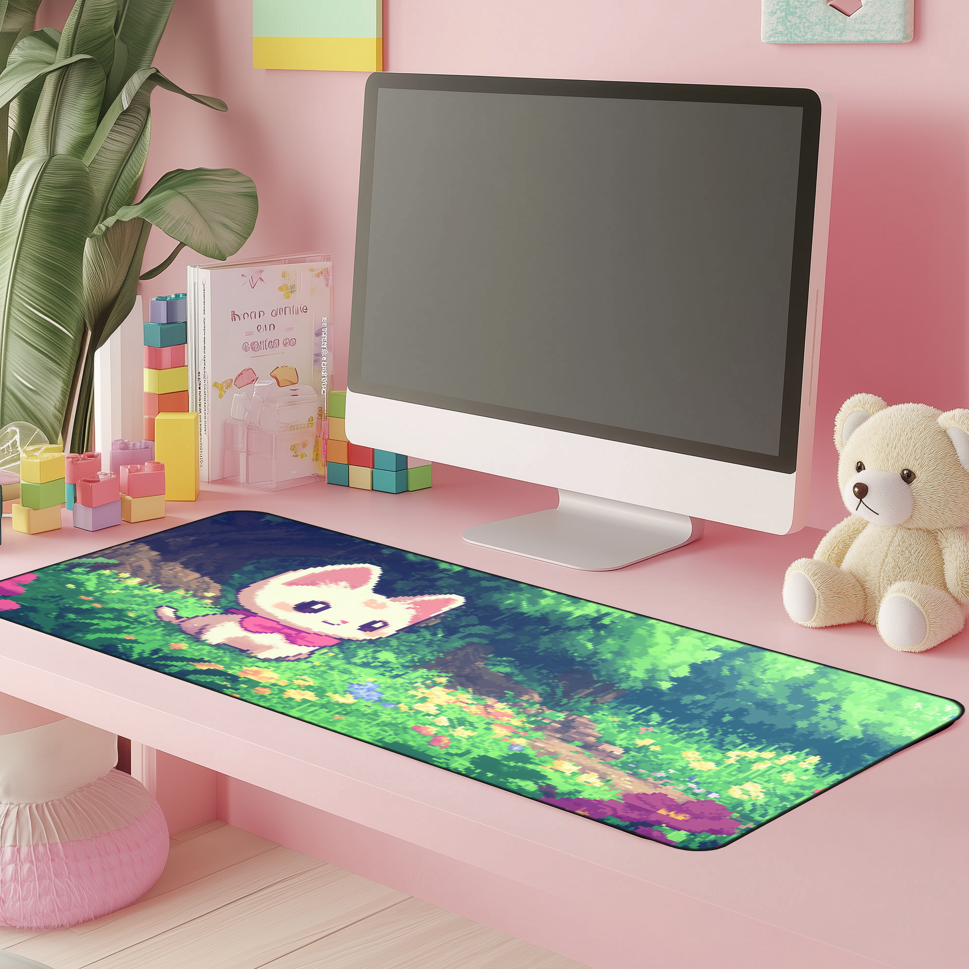 Add a sprinkle of enchantment to your workspace with our "Forest Kitty" Mousepad! This adorable design features a sweet, wide-eyed kitty sitting peacefully in a vibrant, colorful forest full of charm and wonder. Whether you’re working or gaming, this mousepad will bring a touch of hapiness and joy to your everyday routine.