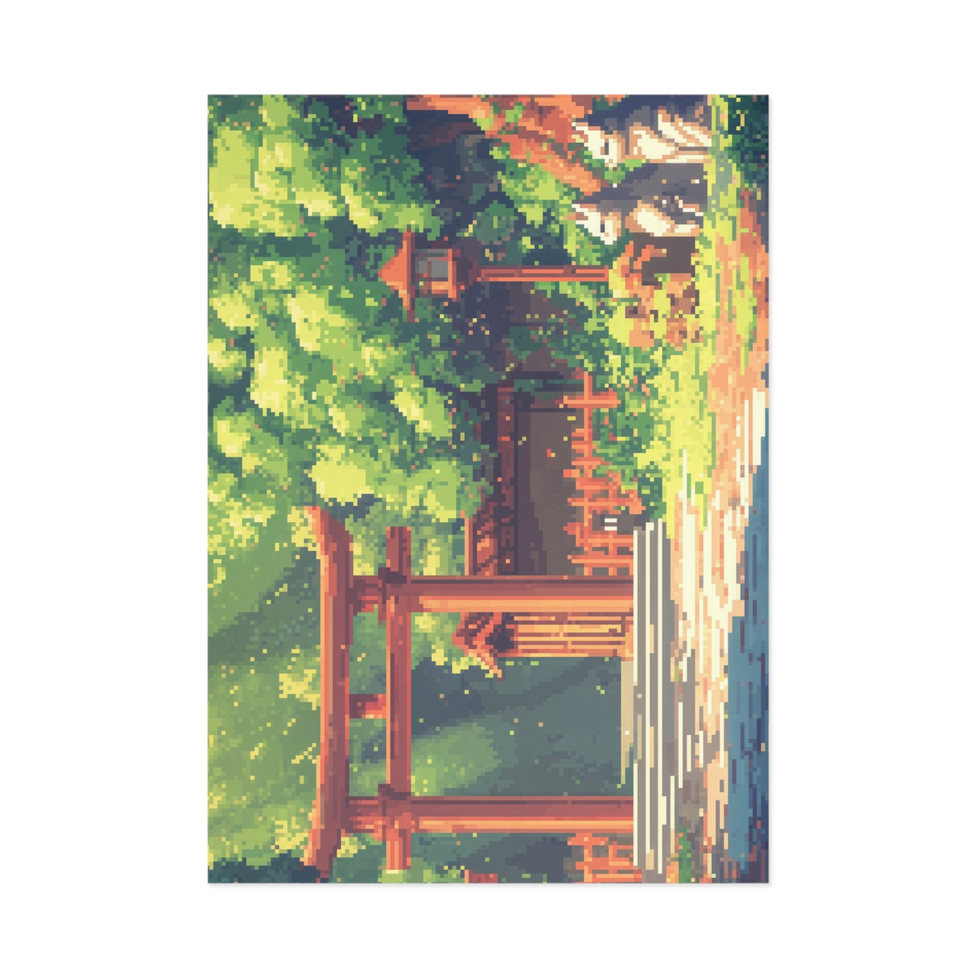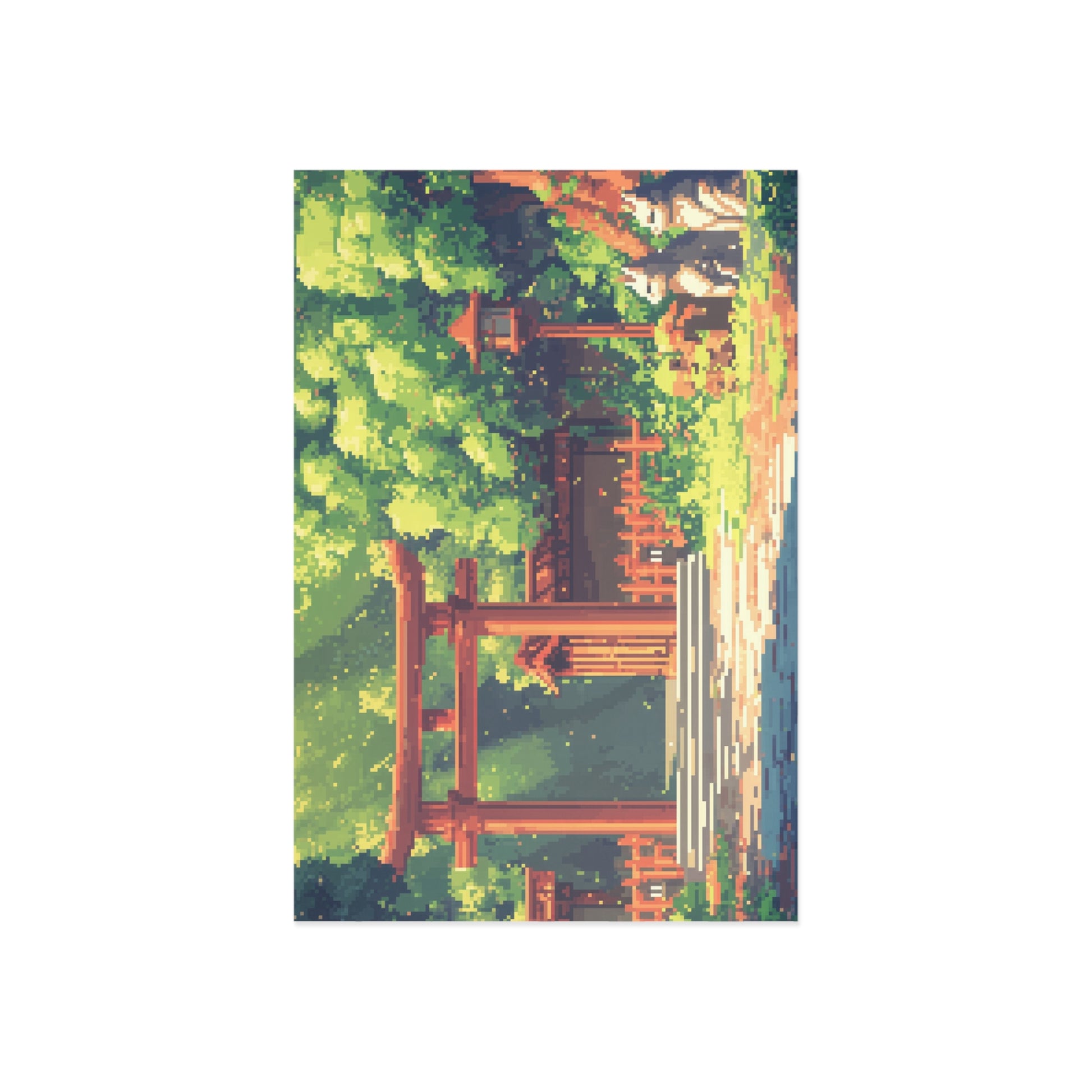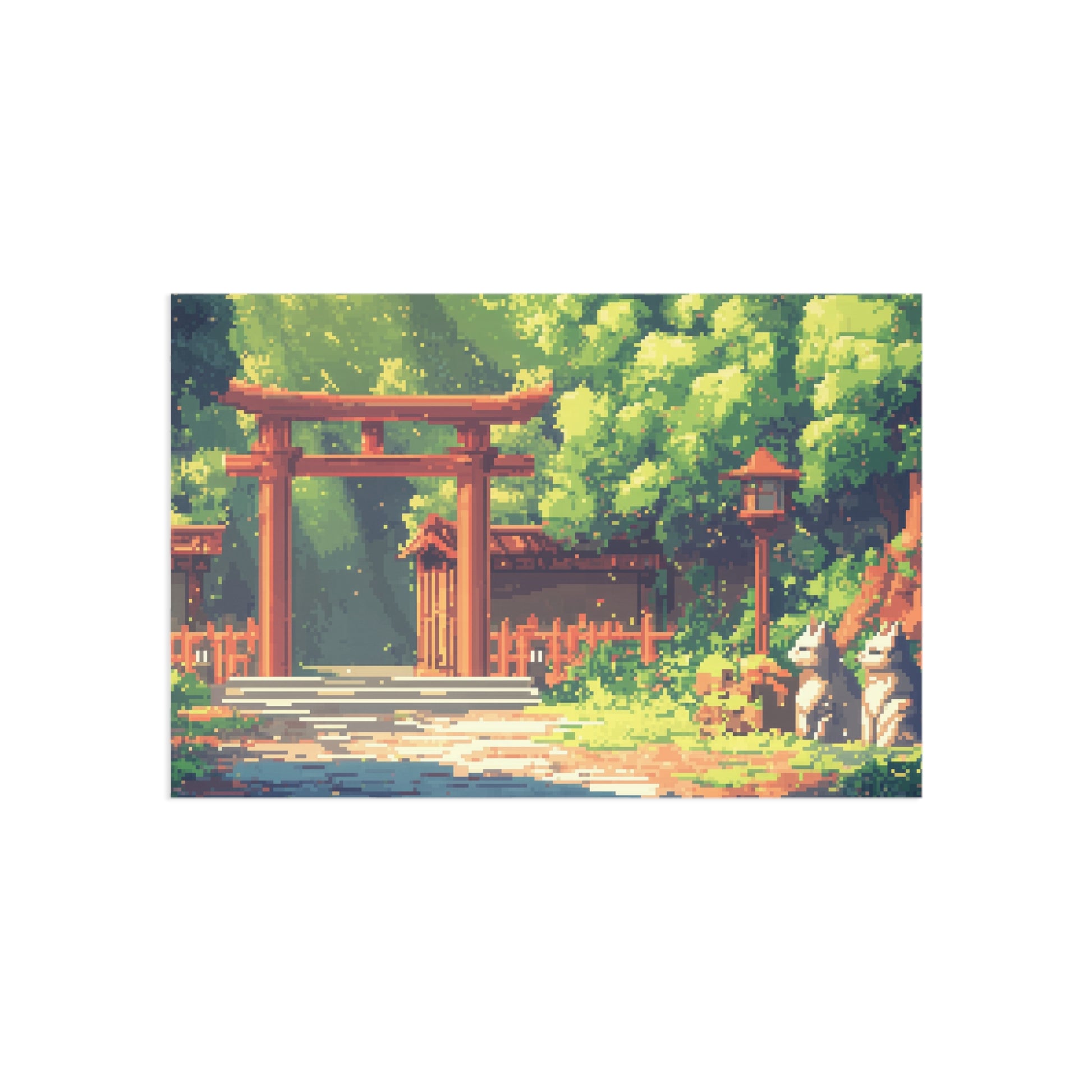 - Beautiful pixel art of two graceful foxes in front of iconic red Torii gates