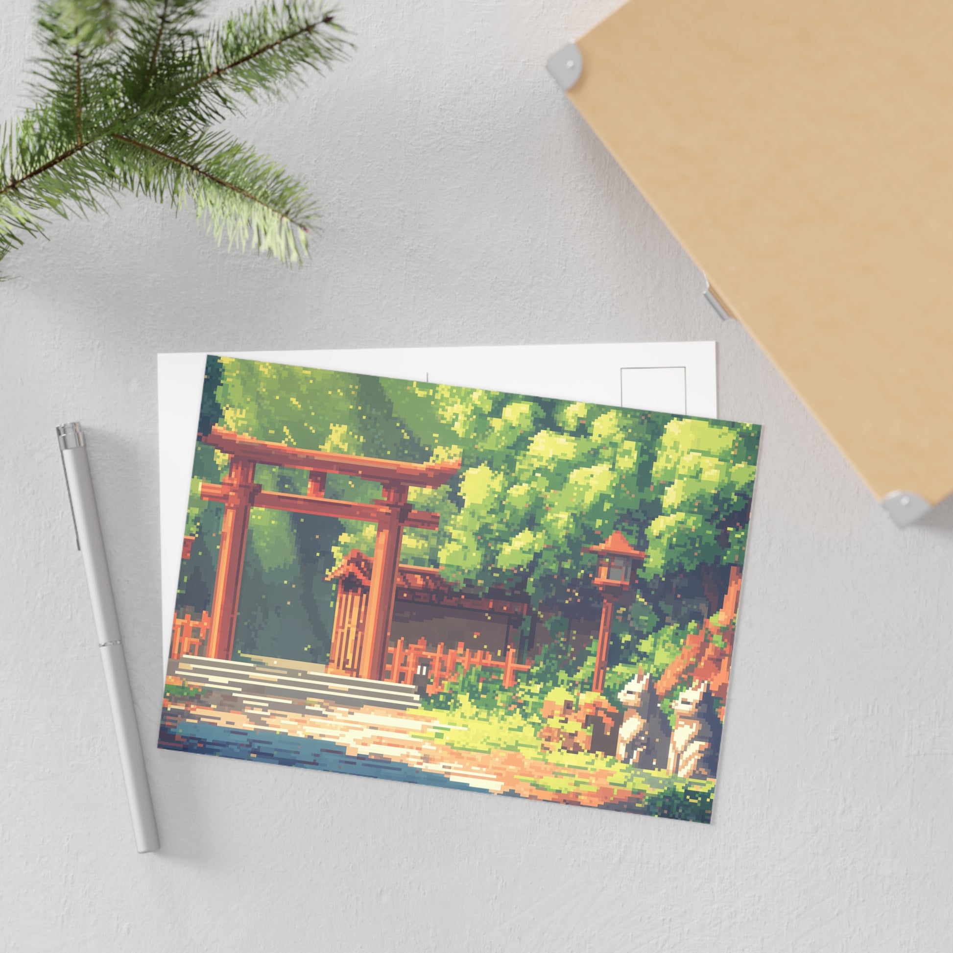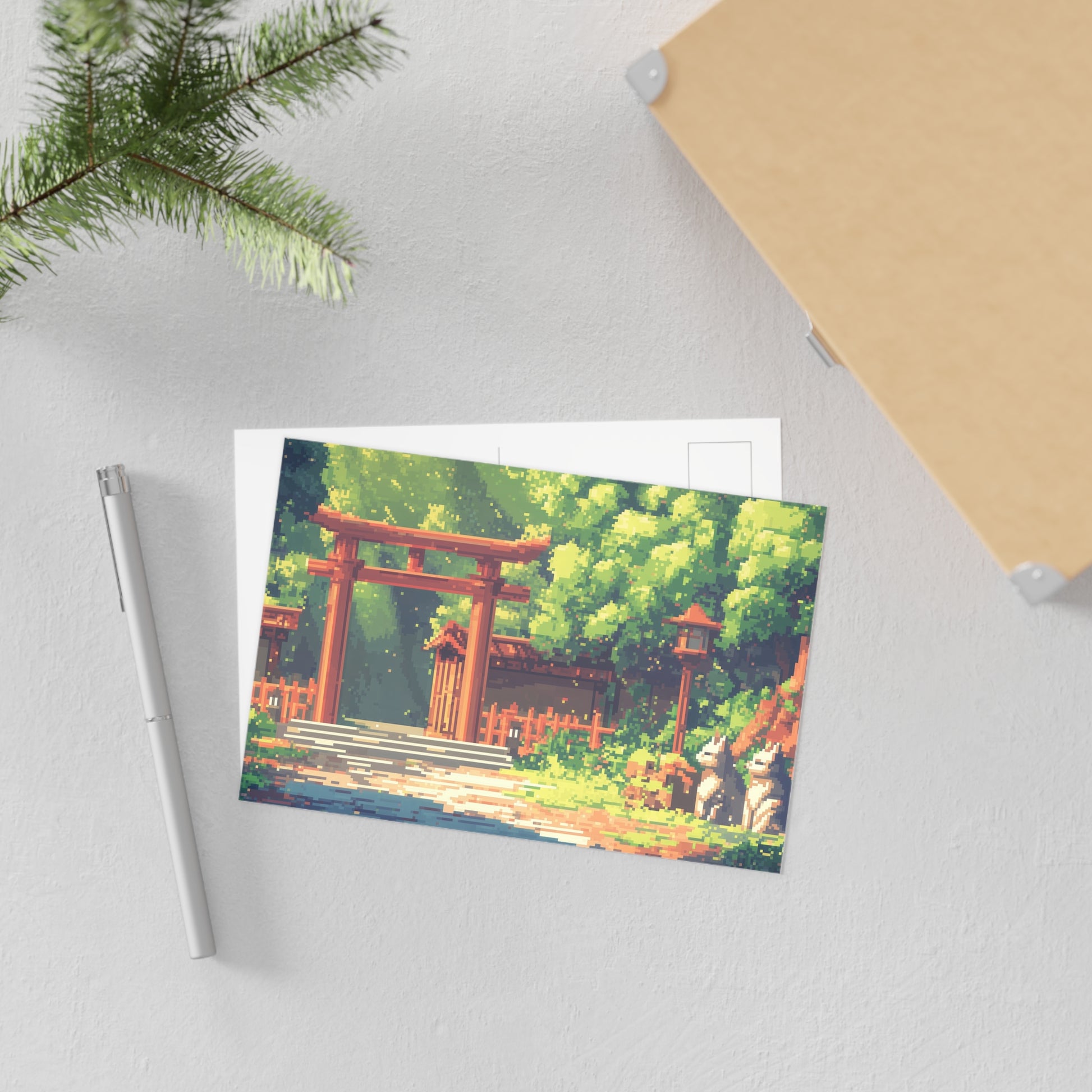 Send a touch of enchanting beauty with our "Foxes at the Tori Gates" Postcards! Featuring adorable foxes sitting proudly in front of a traditional red Torii gate, these postcards capture the serene elegance and mysticism of Japanese culture. With its vibrant reds and soft, calming tones, this postcard brings a peaceful, magical feeling to every message you send.