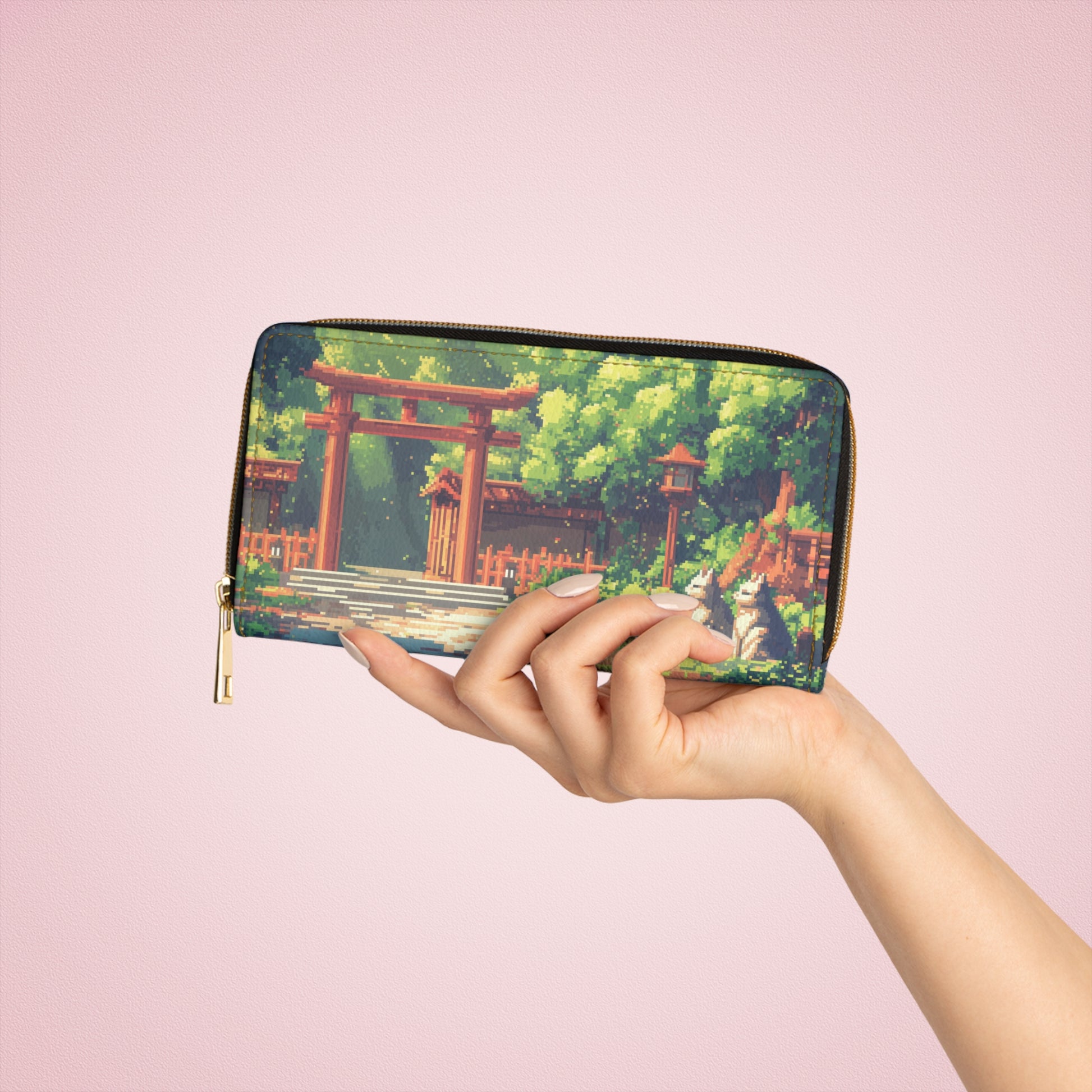 Add a little charm to your day with our "Foxes at the Tori Gates" Zipper Wallet ! Featuring two adorable foxes standing gracefully in front of traditional red wooden torii gates, this wallet transports you to a peaceful, serene moment. Surrounded by soft, natural colors, it’s a reminder of the calm and beauty of nature.