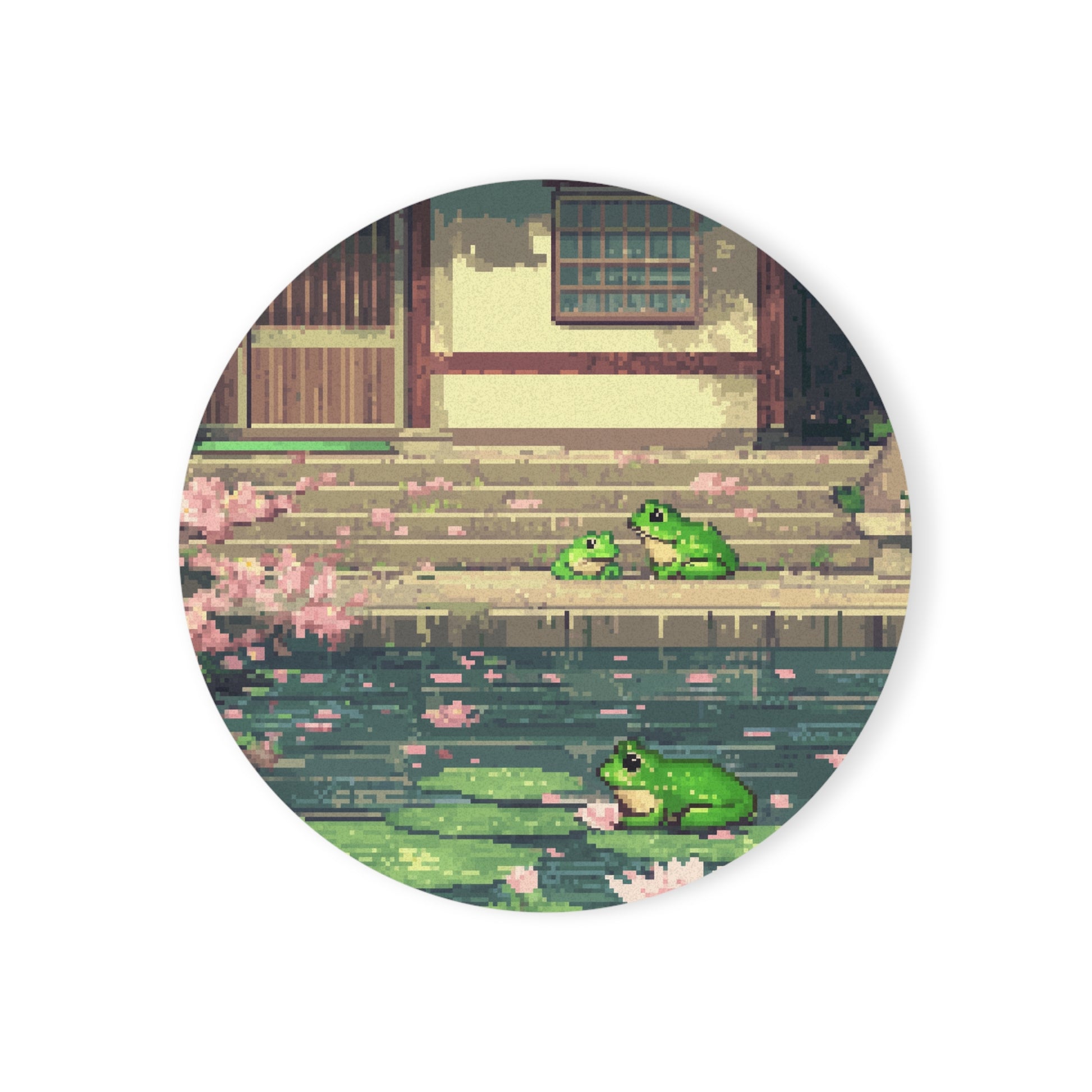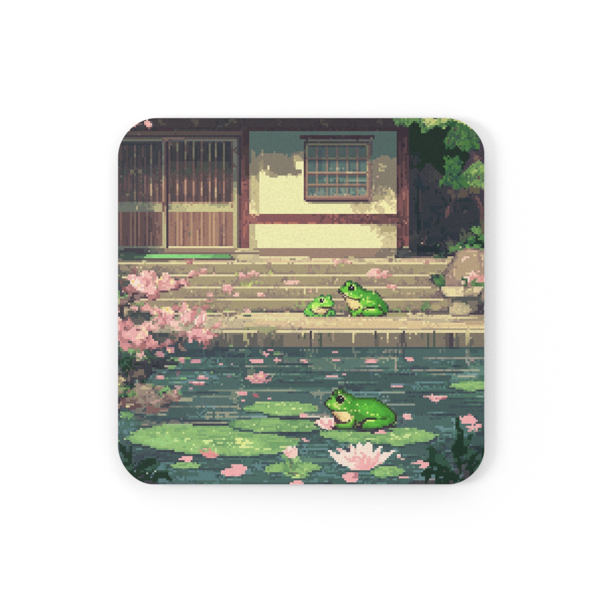 Add a touch of tranquility to your space with our "Frog Pond" Cork Back Coaster! This cute coaster showcases peaceful frogs sitting in a calm pond, right in front of a traditional Japanese-style house. With soft, serene colors and a relaxing atmosphere, it’s the perfect way to bring kawaii calmness to your table.