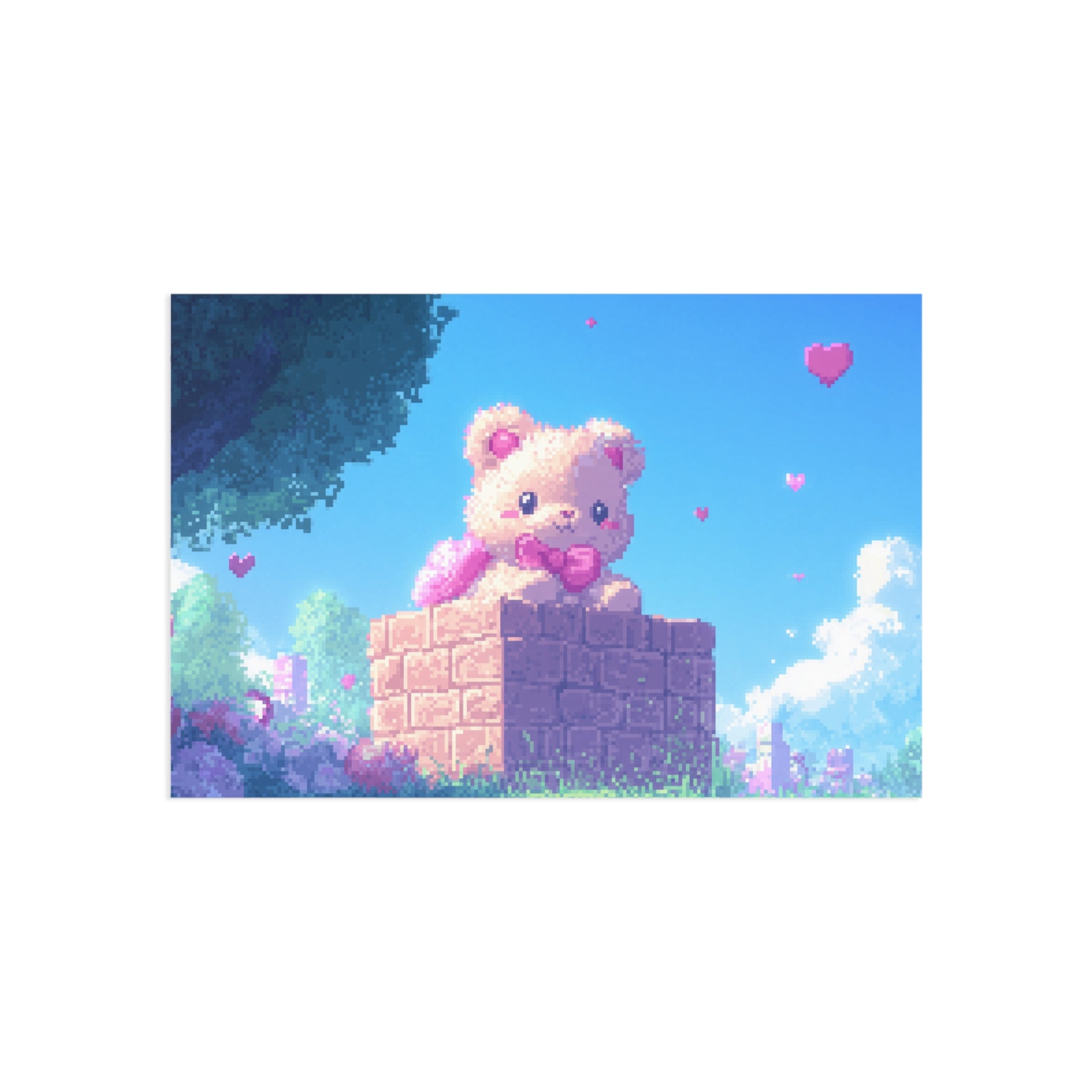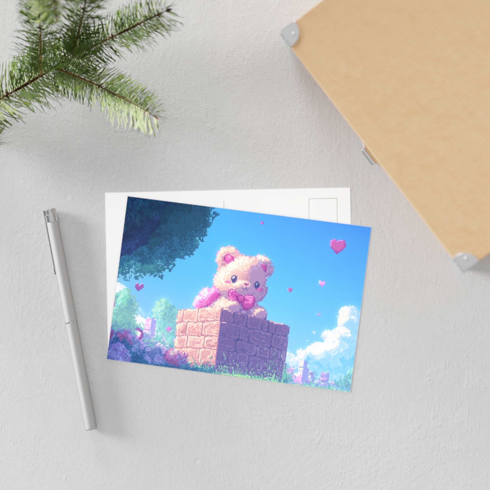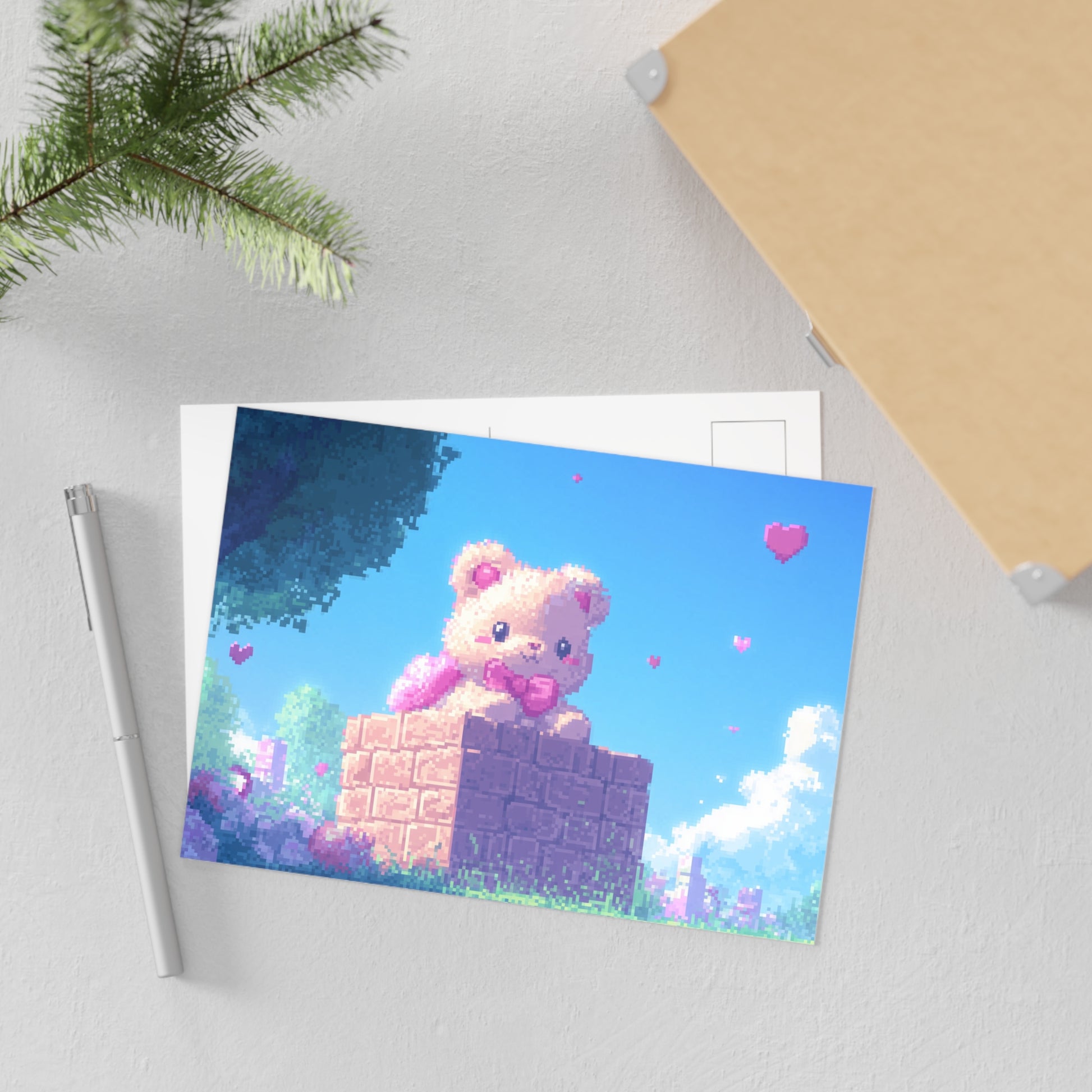 Send a dose of cuteness with our "Lovely Teddy" Postcards! Featuring an adorable teddy surrounded by hearts, soft pink hues, and a bright blue sky, these postcards are the perfect way to share a little love and warmth. Whether you're sending a sweet note to a friend or keeping a piece of pixel-perfect charm for yourself, these postcards bring an extra touch of sweetness to any message.