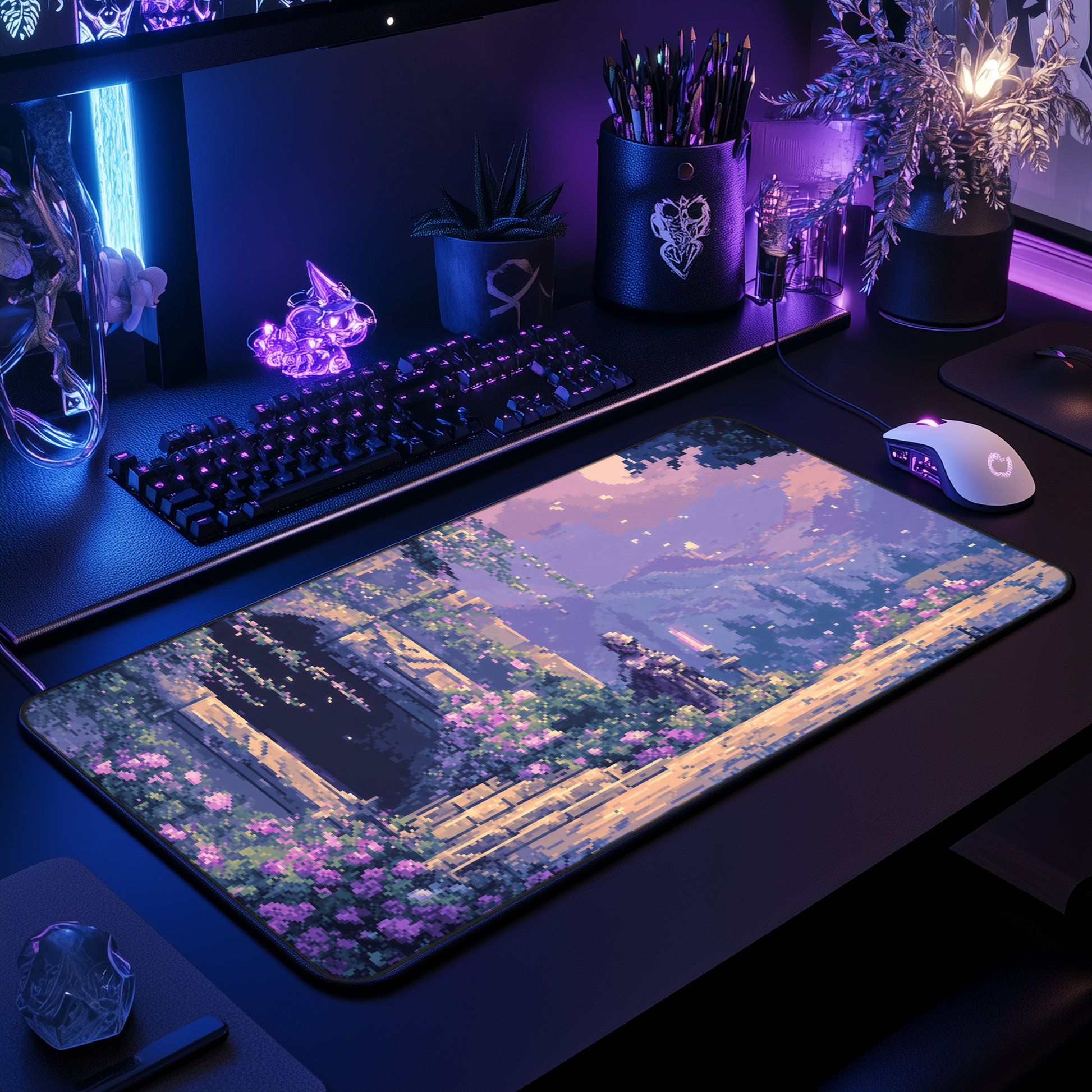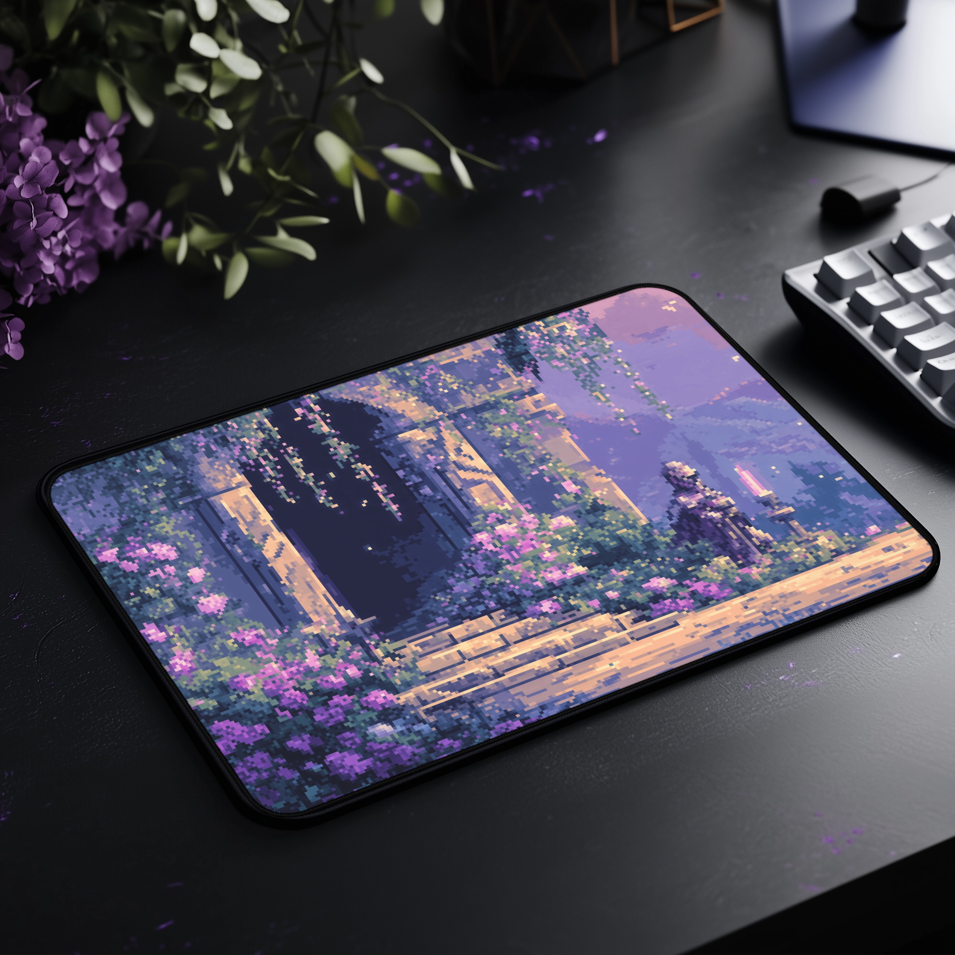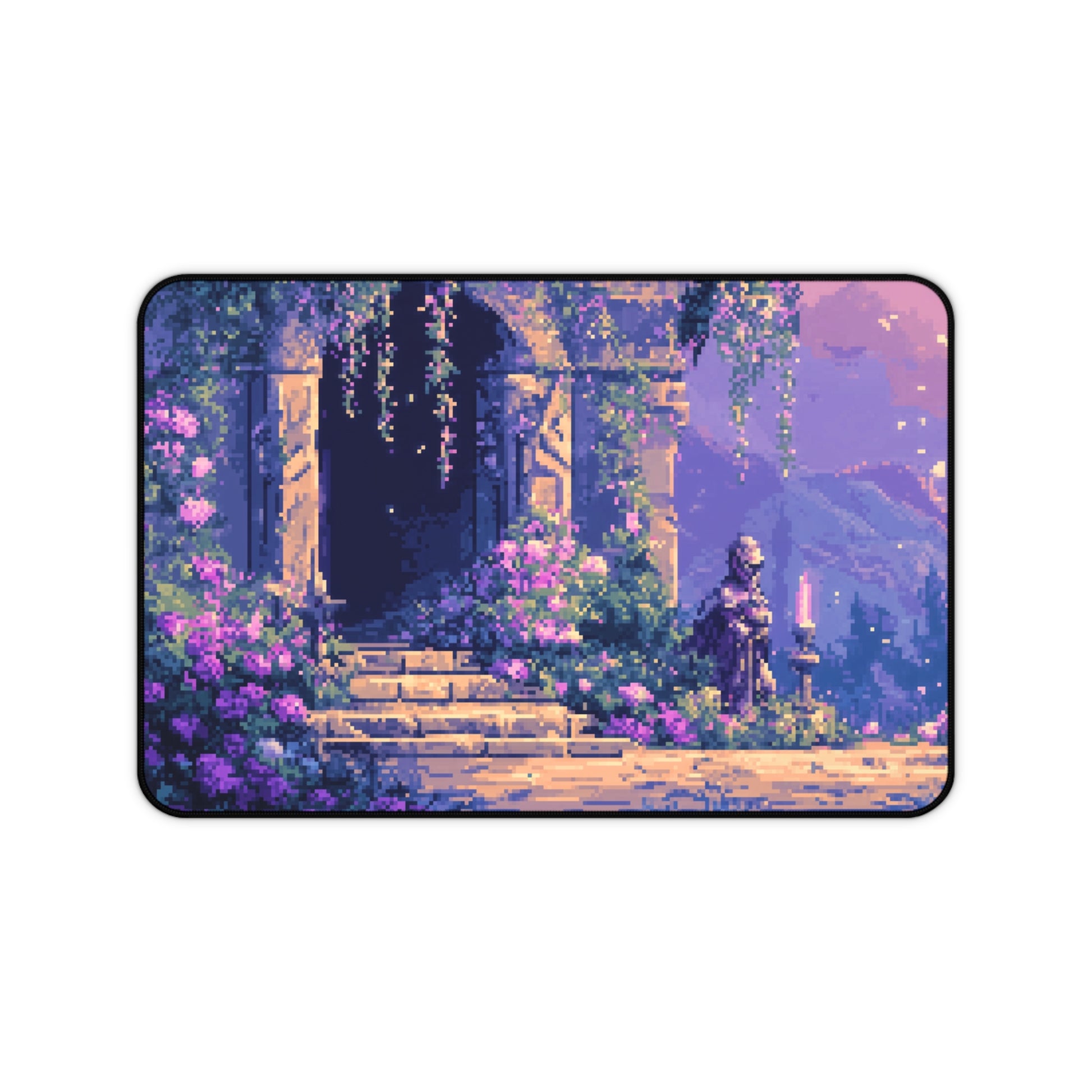 Bring a dash of bravery and charm to your desk with our "Peaceful Knight" Mousepad! Featuring a calm knight standing proudly beside a majestic castle gate, this cute pixel design is wrapped in soft shades of purple and regal tones. Whether you're storming through your workday or battling in your favorite games, this mousepad adds a heroic twist to your workspace, perfect for work or play!