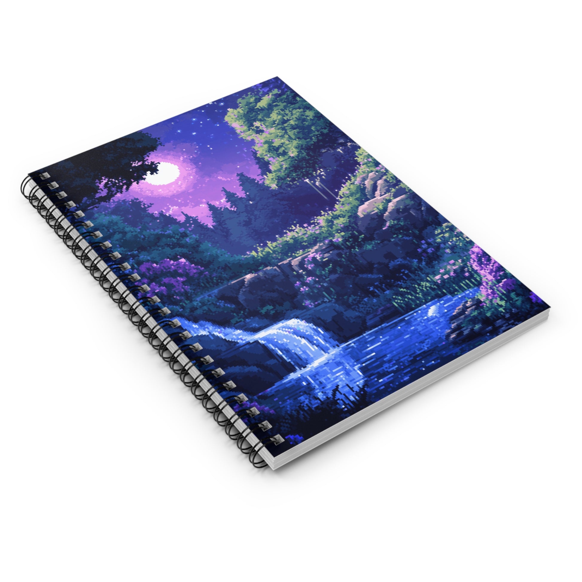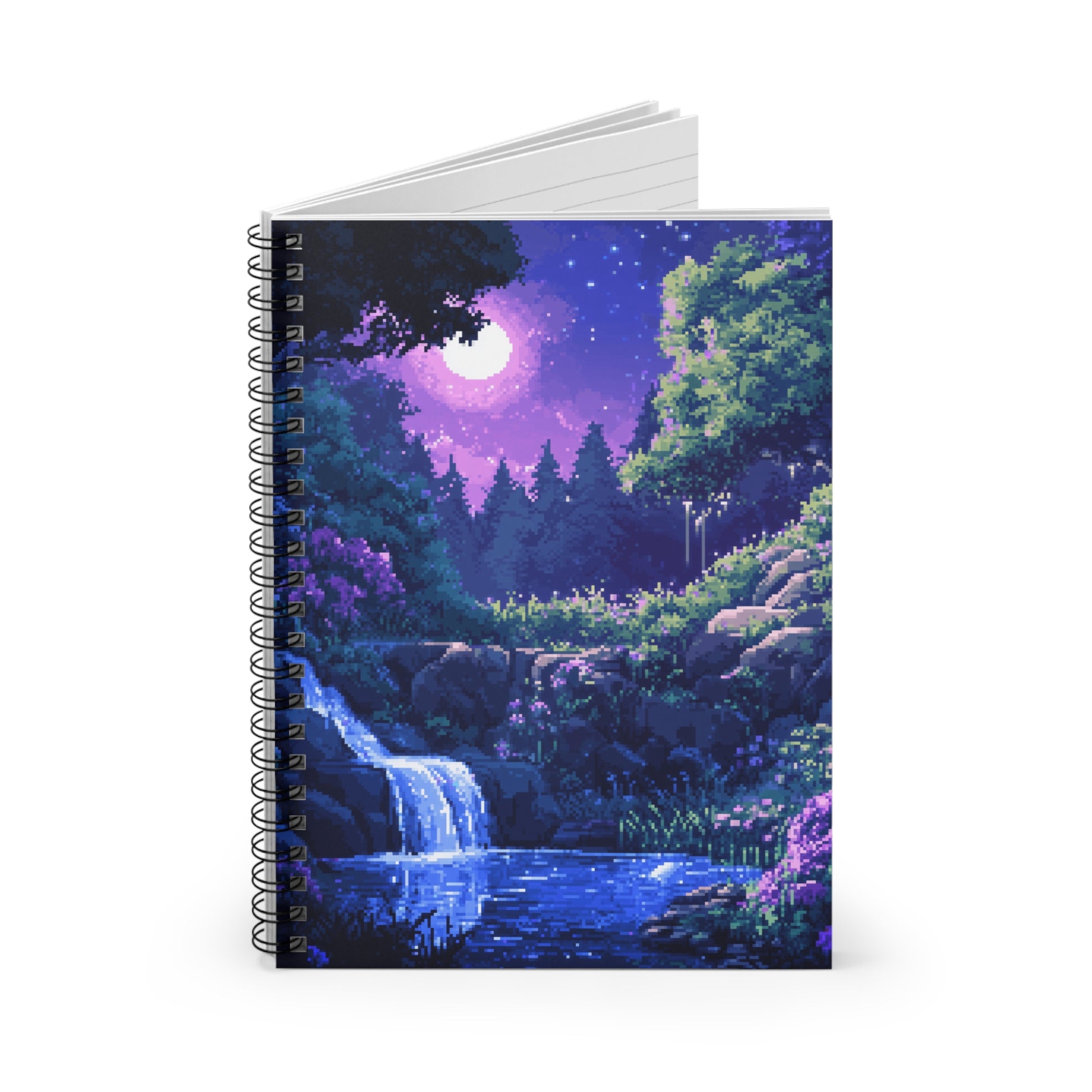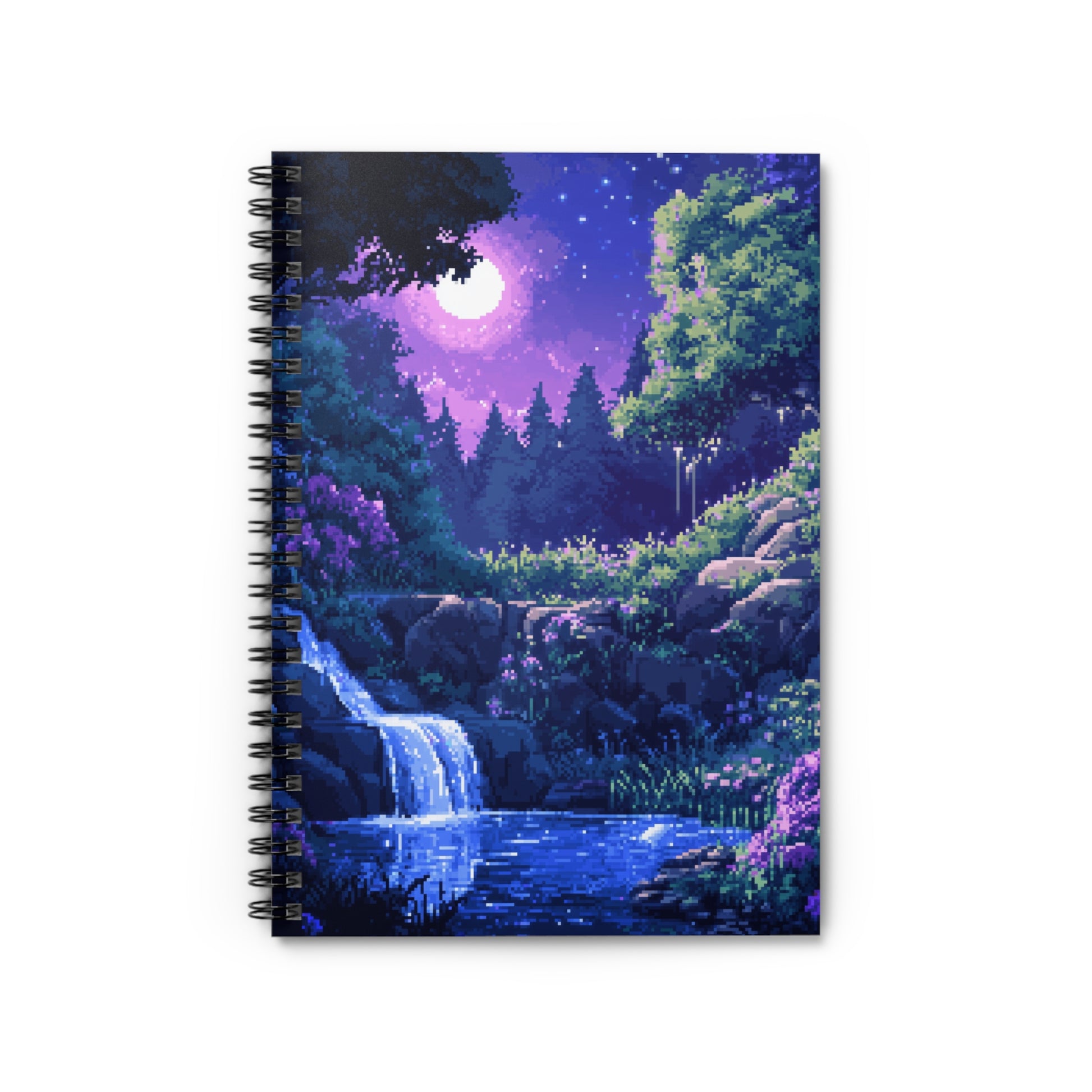 Let your creativity flow like a waterfall with our "Serene Nature" Spiral Notebook - Ruled Line ! This enchanting design features a serene nighttime forest, a cascading waterfall, and deep, dreamy purples that bring a sense of calm and wonder. Whether you're jotting down ideas, doodling, or journaling your thoughts, this notebook adds a little touch of magic to every page.
