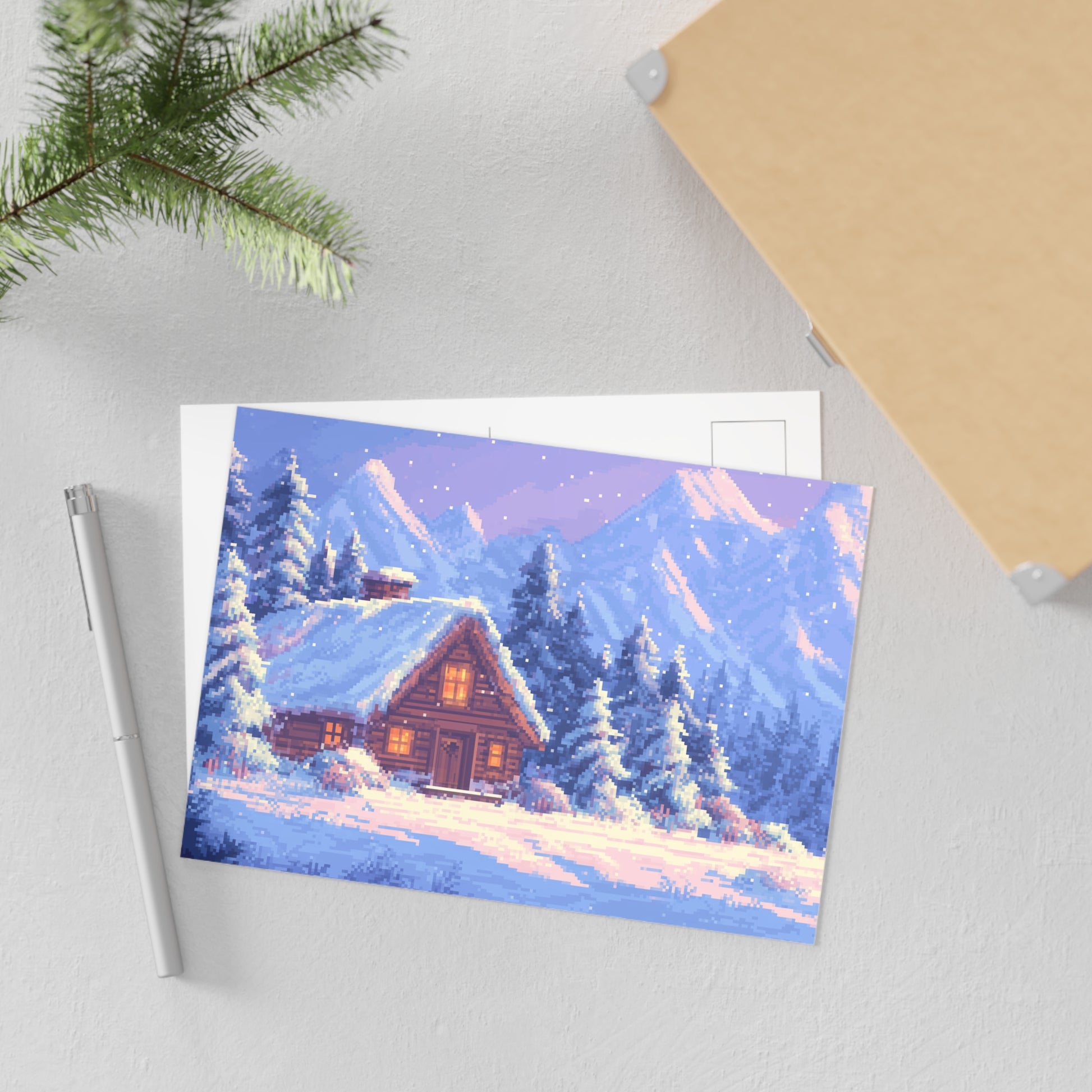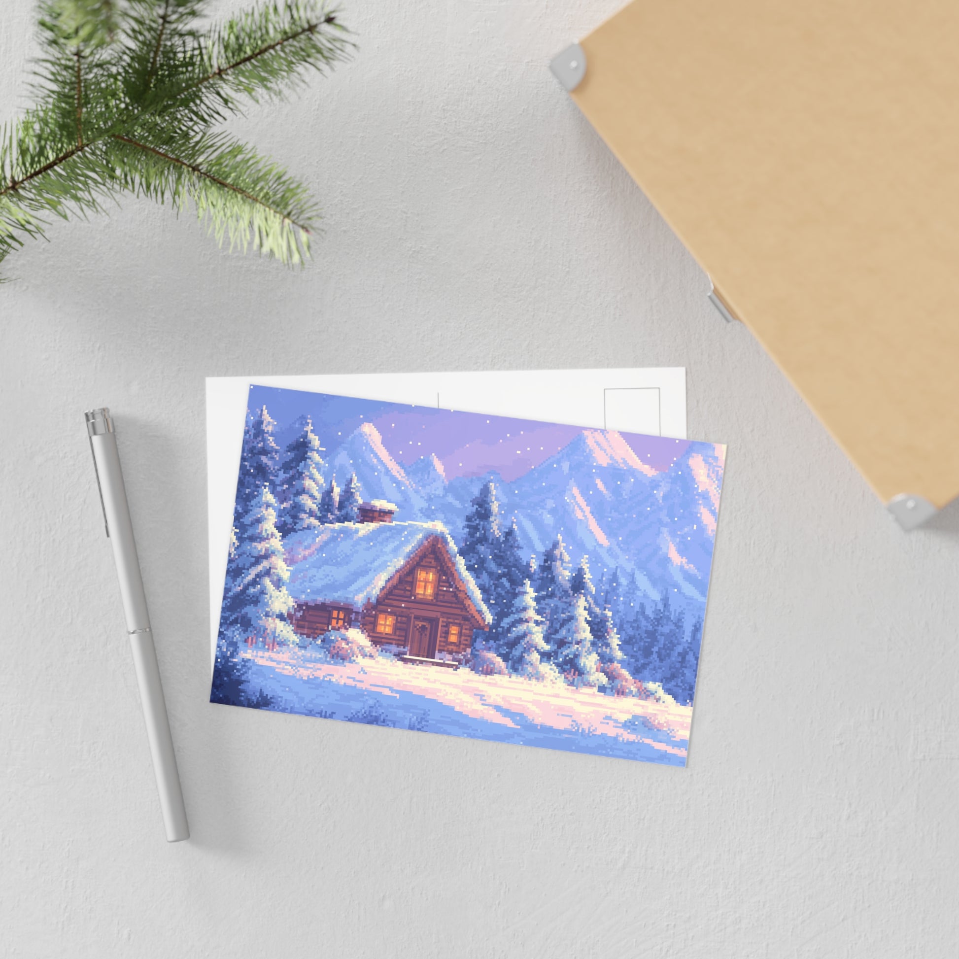 Send a warm and peaceful winter getaway with our "Winter Cabin" Postcards! Featuring a charming cabin nestled in a snowy forest, with majestic mountains in the background, these postcards capture the serene beauty of winter. With soft snowflakes and a tranquil vibe, they’re perfect for sending a cozy note or keeping a piece of winter magic for yourself.