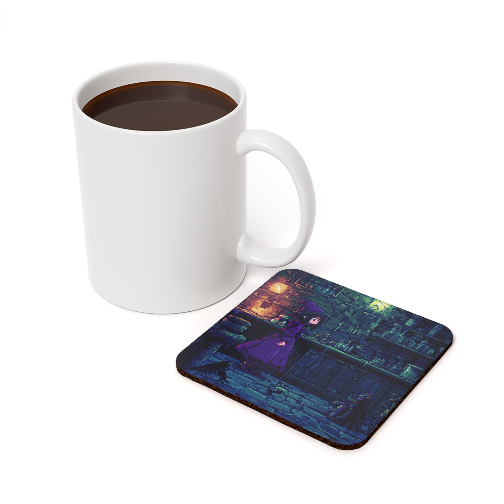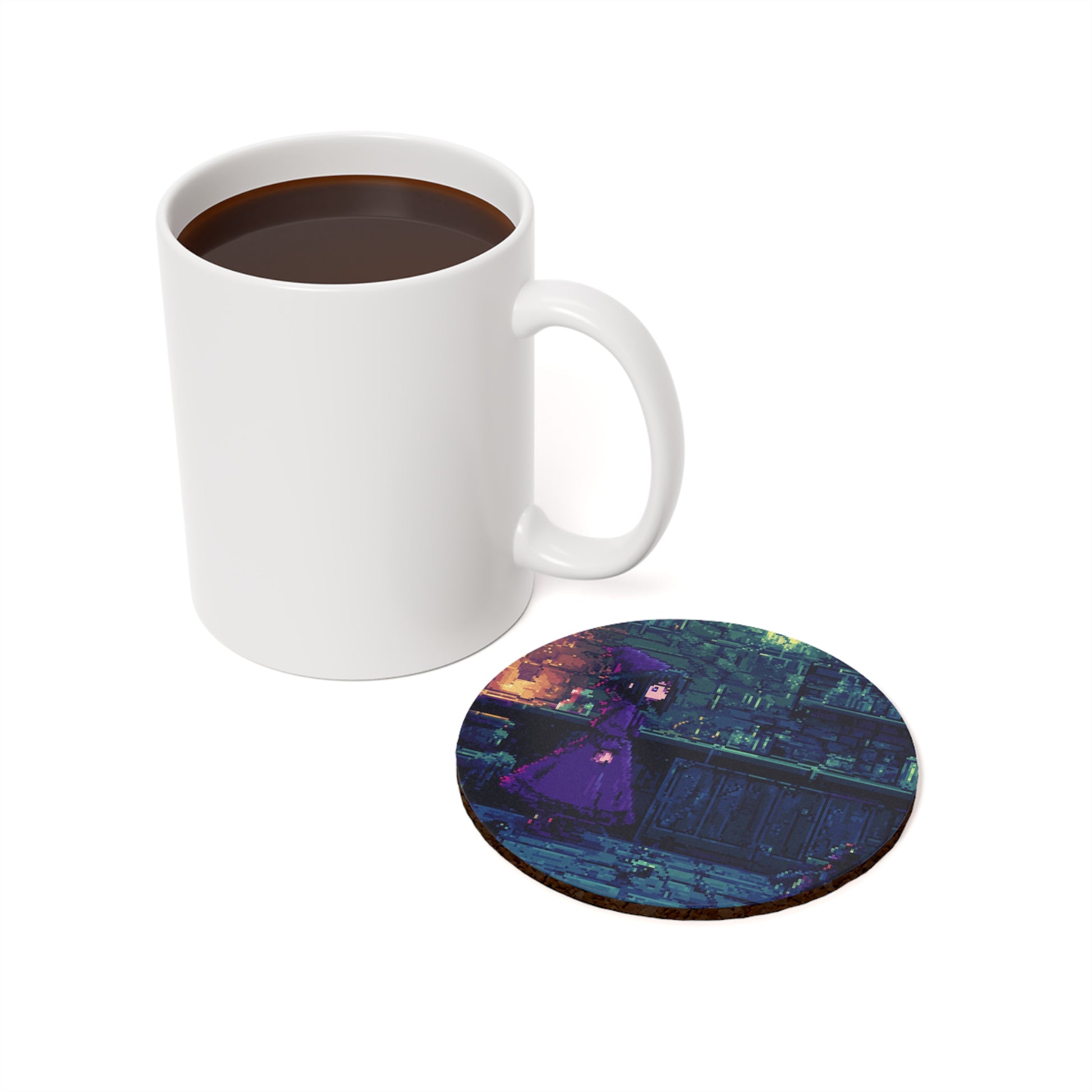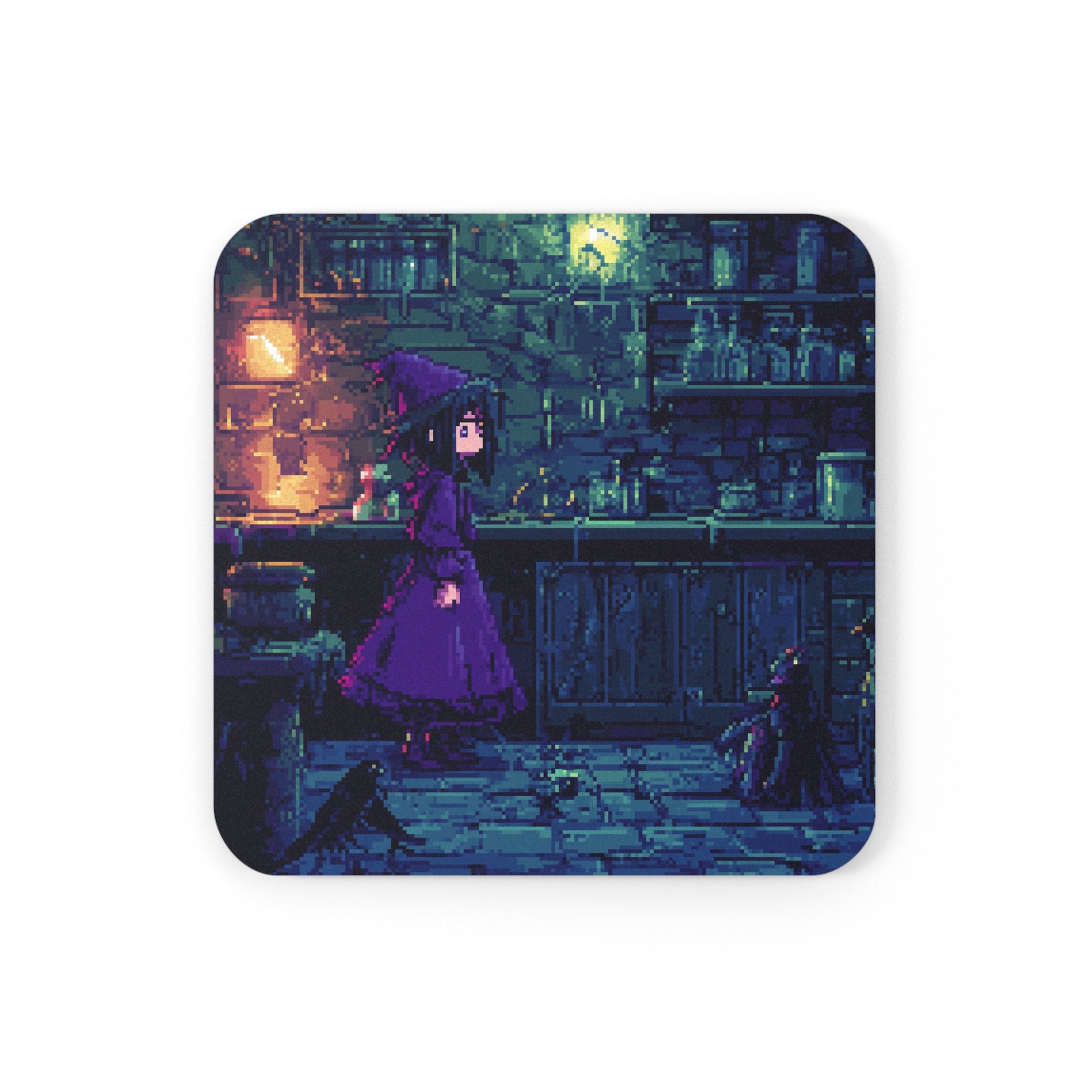 Bring a dash of spooky-cute magic to your space with our "Witch’s Lair" Cork Back Coaster! This enchanting coaster shows a kawaii witch standing in her cozy home, surrounded by mysterious crows and potions, all in dark, moody tones. Perfect for those who love a bit of spooky charm with their kawaii vibes.